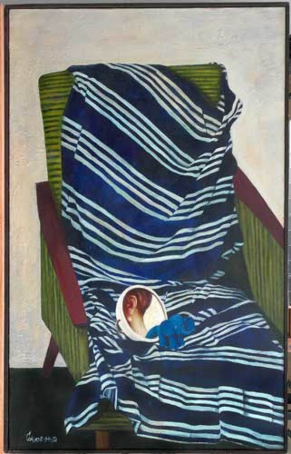 Художник почти не пишет пейзажей. Пейзаж виден в раскрытую дверь или в проёме окна, в люке иллюминатора или отражён в зеркале. У Соколова, так крепко привязанного к реальности, к натуре, отношения с окружающей действительностью всё-таки сложные. При всей очевидности, реальность остается для него чем-то непредсказуемым, загадочным и полна скрытой новизны…