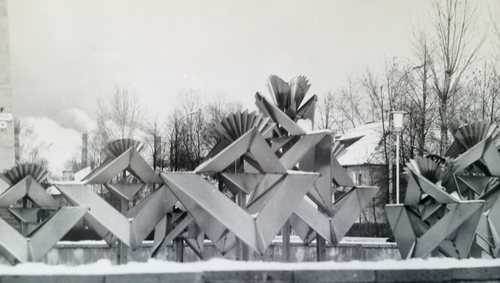 Я также принимал участие в оформлении городской среды. Мною были созданы проекты детского городка возле кинотеатра «Аврора», девяти декоративных фигур из металла, декоративных конструкций для размещения на них телефонов-автоматов (см. фото).