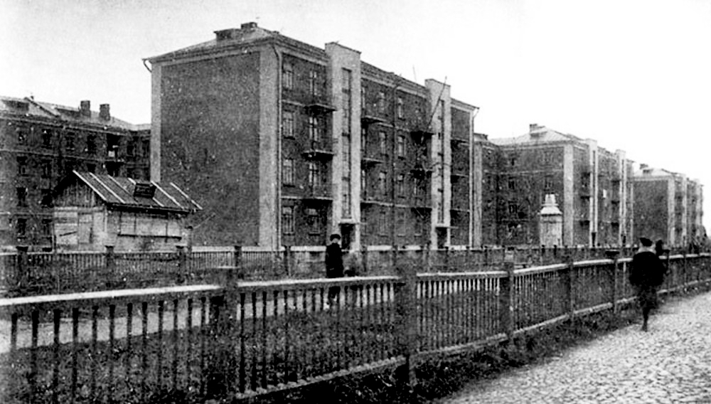 Уже в июне 1927 года начата кладка первых трех домов, в августе выложены три этажа первого дома. В мае 1928 года заканчивается кладка пятого дома, в остальных четырех ведутся отделочные работы, монтируется отопление, водопровод, канализация. В июле приступили к устройству тоннеля для магистрали отопления. В сентябре 1928 года заложен шестой дом, в 1929 — седьмой. В январе 1929 года первые пять домов были закончены и введены в эксплуатацию.