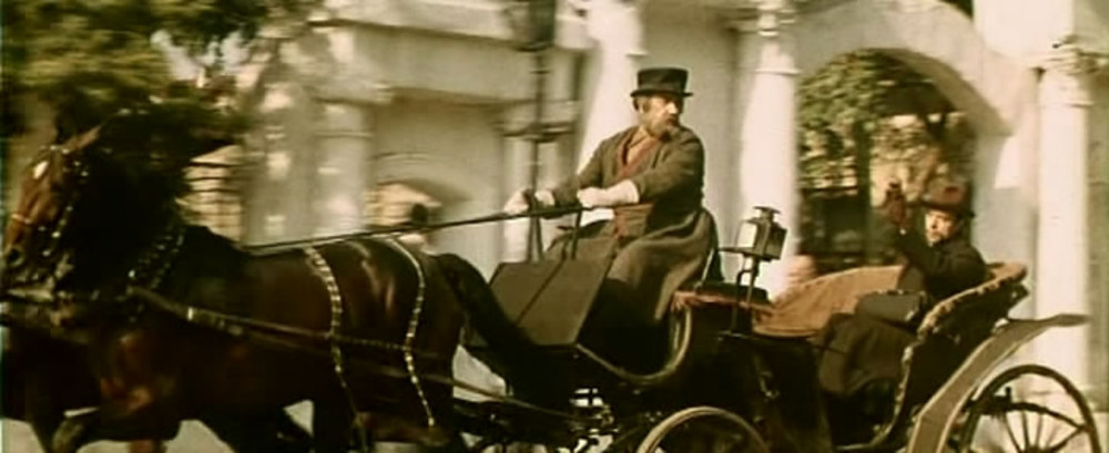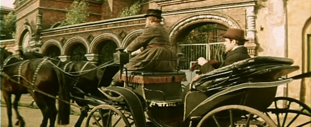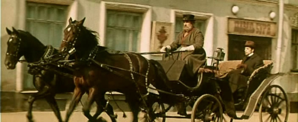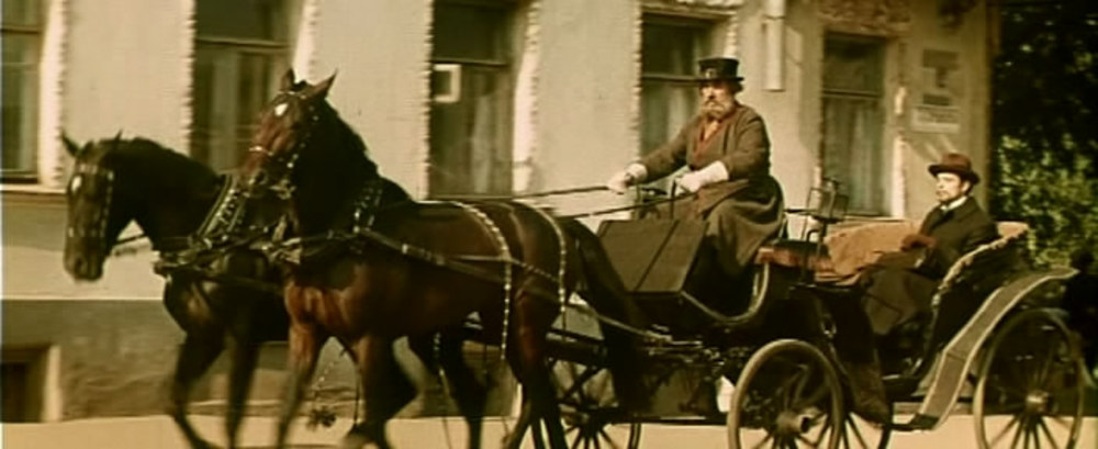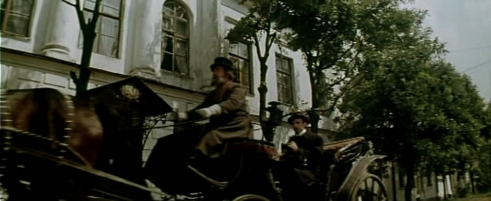 Топорков несколько раз проезжает по городу: на фоне Знаменской церкви в Депутатском переулке, бывшей глазной лечебницы на углу Революционной улицы и Волжской набережной, дома Лопатиных (сейчас — Дом работников образования) и усадьбы Сорокина — мимо знаменитых ворот со львами.