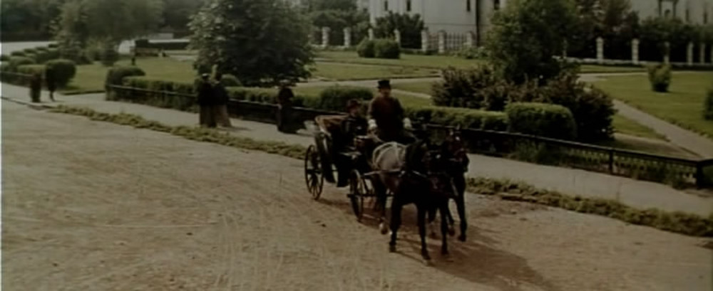 Нанося визит больной княжне, Топорков входит в подъезд главного дома усадьбы Матвеевских. При проезде Топоркова видна церковь Ильи Пророка. Но, глядя в окно на экипаж Топоркова, княжна видит церковь с противоположного угла площади — из окна дома № 6 по Народному переулку. Дом был построен в начале 1930-х годов, а ранее на этом месте находилась ограда усадьбы Н. П. Пастухова, поэтому до революции увидеть Ильинскую площадь с такого ракурса было невозможно.