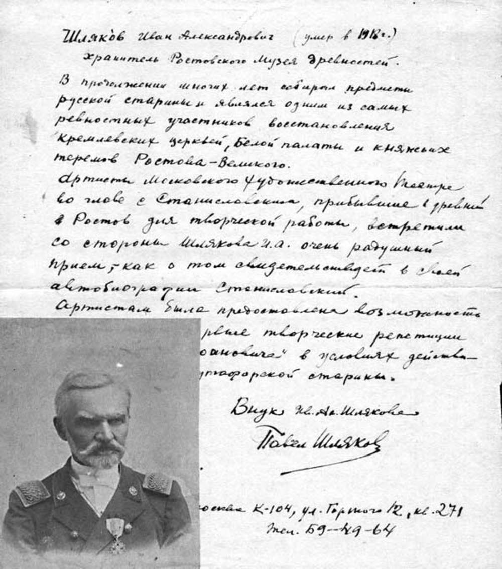 ШЛЯКОВ Иван Александрович (28.1.1843, Ростов Ярославской губ. — 14.3.1919, Ростов) — историк искусства, реставратор, музейный деятель.